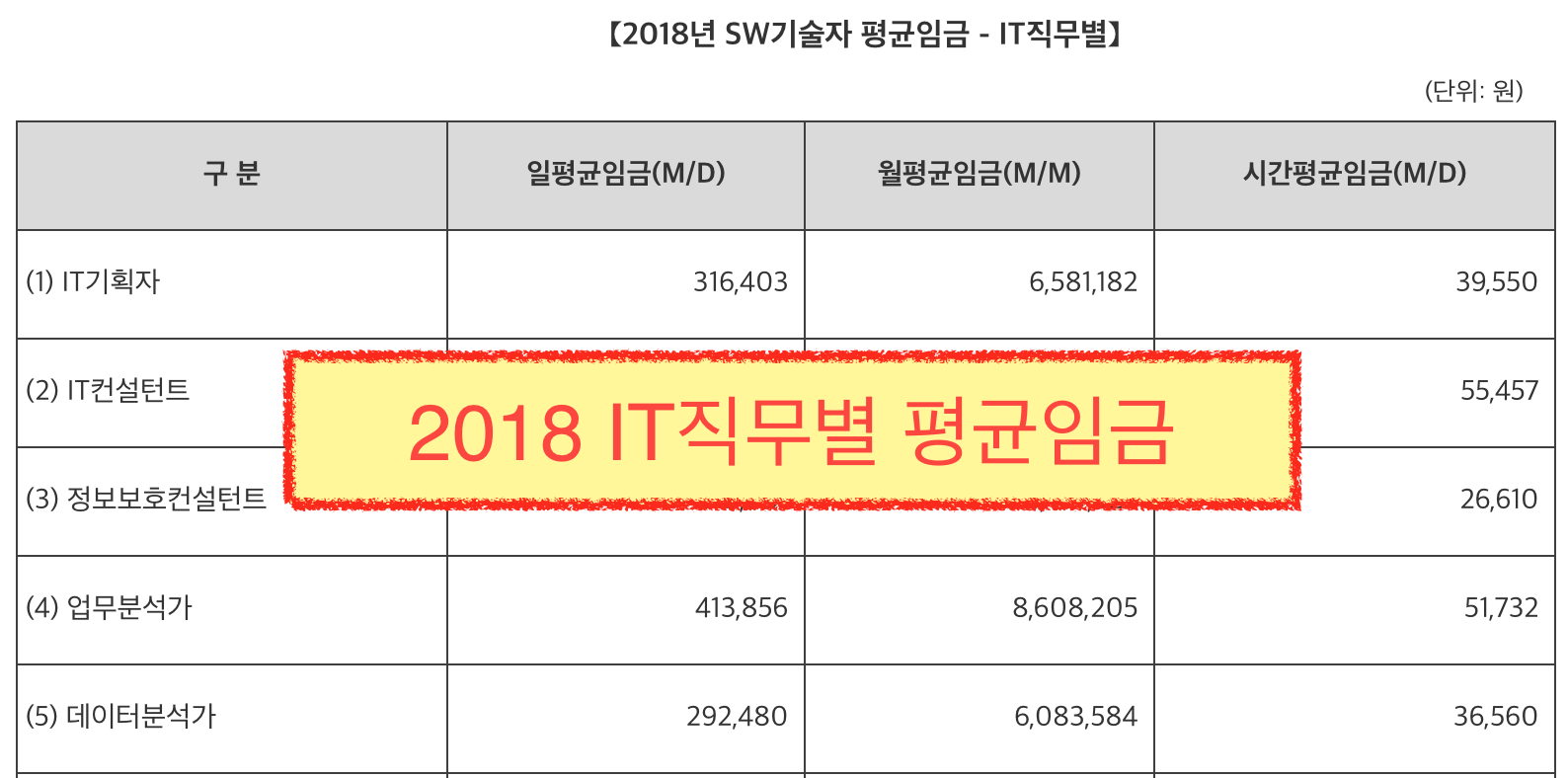 【2018년 SW기술자 평균임금 - IT직무별】