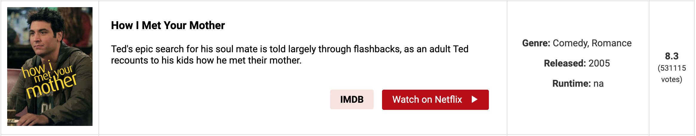 영어 공부하면 자주 추천받는 미드 Friends, How I Met Your Mother 등이 나오네요.
